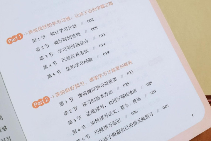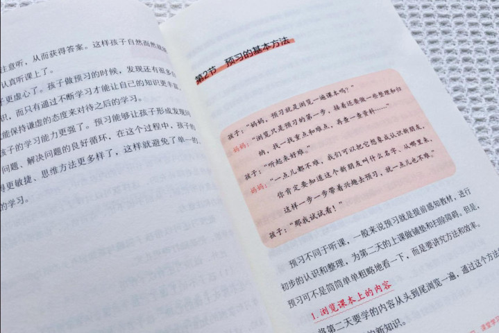 比如,第二章讲“课前预习”这个习惯内容的时候,就先讲述了做好课前预习的重要性,让你或者孩子在理解预习重要性的基础上,再学习预习的基本方法,做到知其然更知其所以然,从而能更主动、高效地运用方法开启预习之旅。