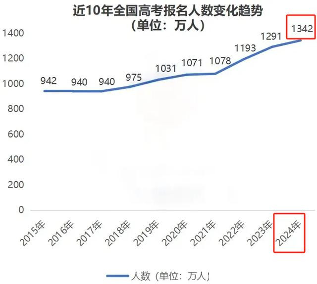 2024年数据显示:全国参与高考人数1342万,清北录取率0.05%,985/211录取率6.6%,一本录取率15%。