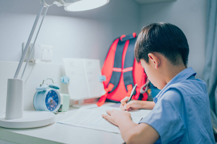 后来上了小学,尤其是低年级时,妈妈每晚都陪他复习当日所学,写作业,预习新知识,整理错题,还给他讲一些高效学习的方法,比如课上认真记录、遇到难题主动向老师请教……